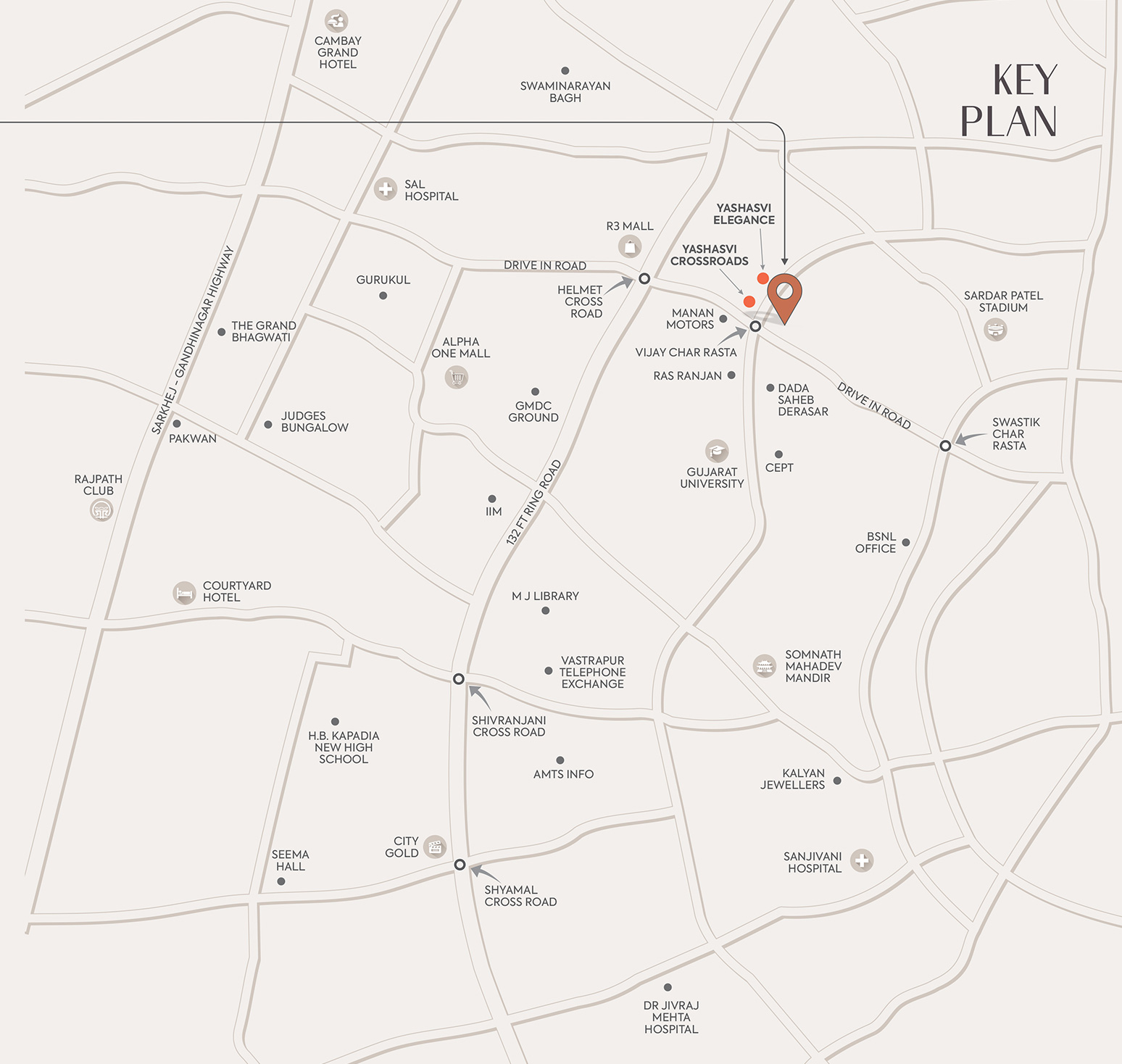 A rare commercial gem in Ahmedabad’s most prestigious Yashasvi Crossroads enclave. Prime showrooms & modern offices energized with daylight, premium brands, and unmatched connectivity; just minutes from metro, BRTS, top institutions, and city landmarks.